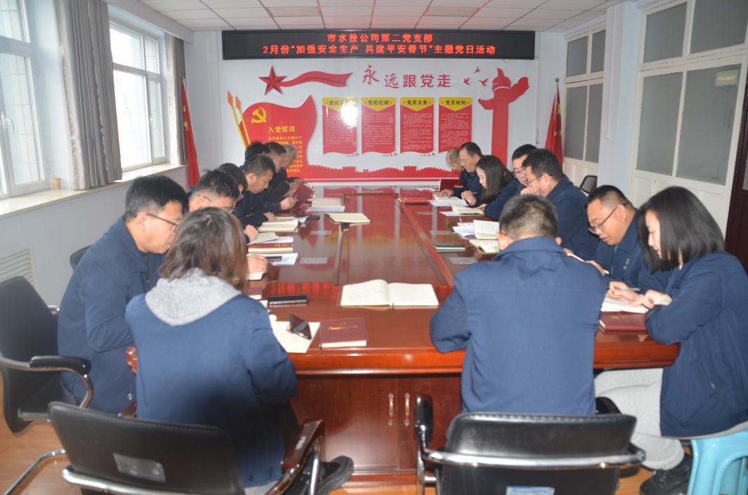 按照市水投公司党委统一部署要求,我公司于2024年2月5日下午组织全体党员、积极分子开展了“加强安全生产 共度平安春节”主题党日活动,会议由支部书记吴争兵主持。
