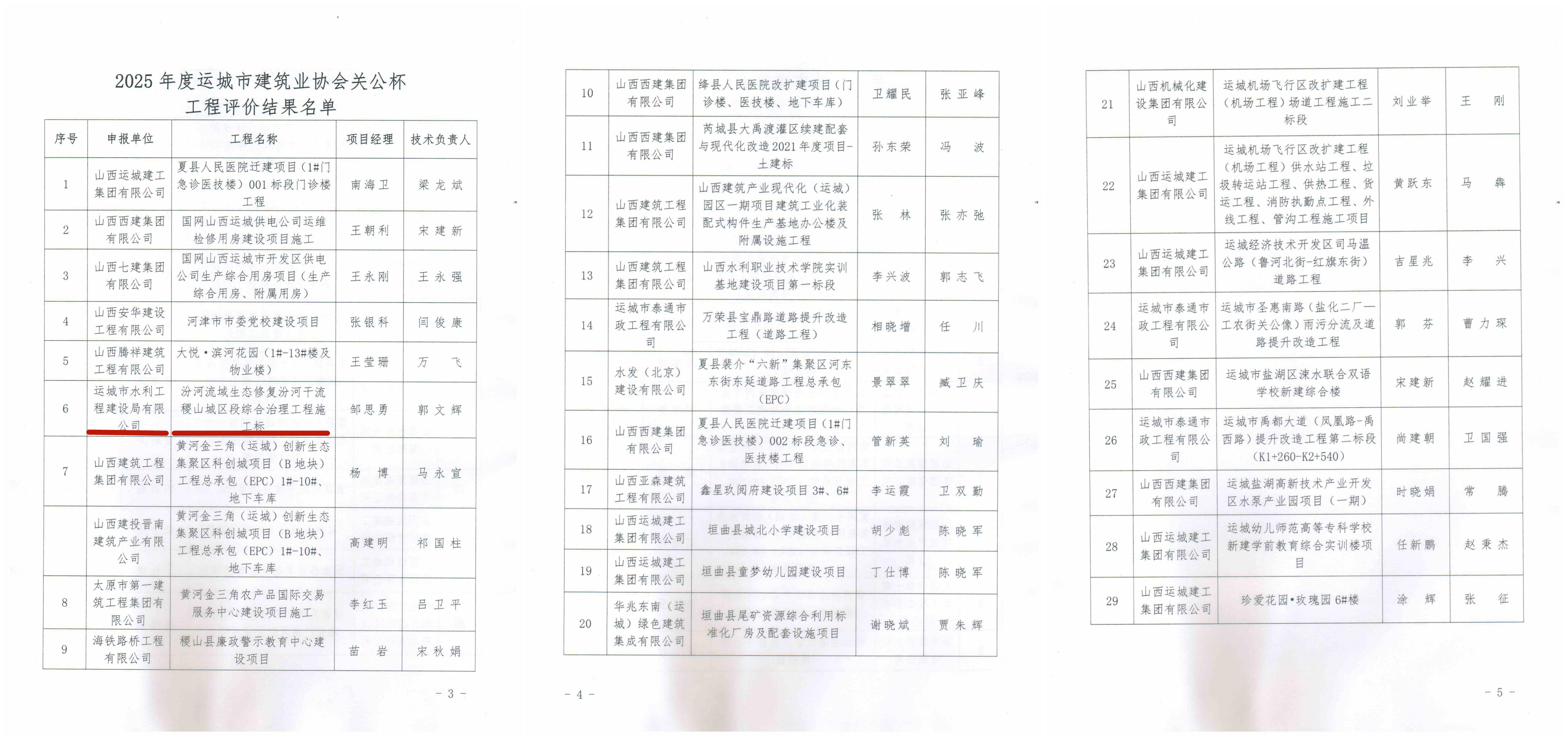 我公司张军民、郭文辉等6名同志荣获2025年度运城市建筑业优秀项目经理称号